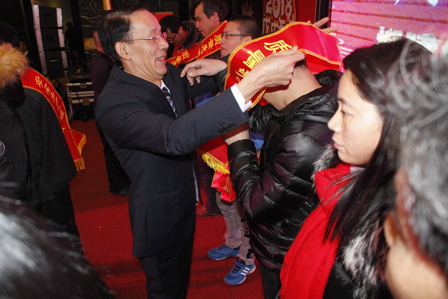 監(jiān)事會主席彭榮平為優(yōu)秀員工佩掛授帶↑