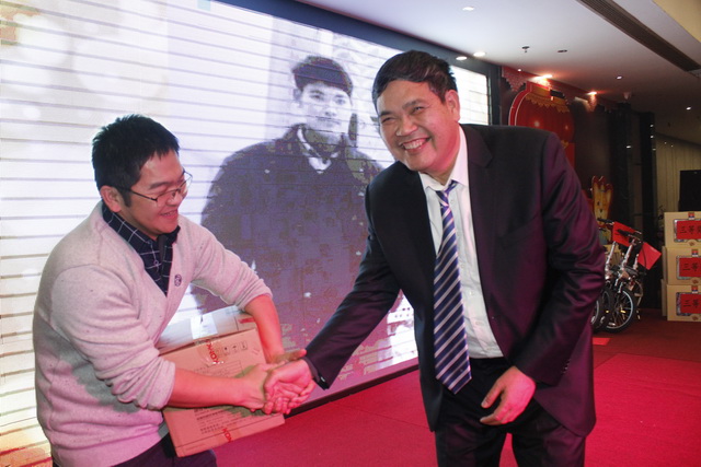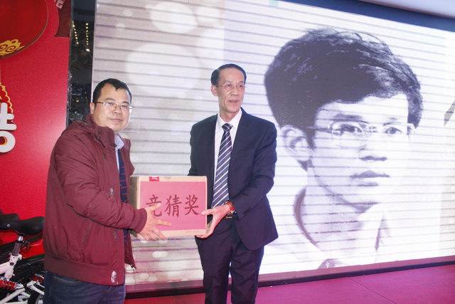 董事長為獲得一等獎的幸運者頒獎↑