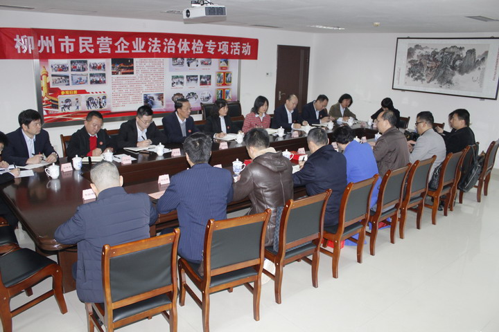 2018年12月18日上午,柳州市司法局李緋局長率律師團(tuán)一行9人,到集團(tuán)公司進(jìn)行民營企業(yè)法治體檢專項活動。此行旨在了解企業(yè)依法經(jīng)營的執(zhí)行情況;關(guān)注企業(yè)在合法經(jīng)營過程中面臨的困境;從法律的角度尋找切入點為企業(yè)排憂解難。