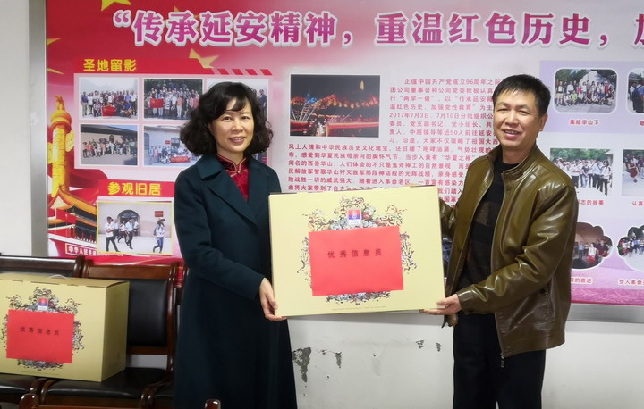 會(huì)上,對(duì)撰稿最為突出的雷子輝、唐小劍及陳筑明等3位信息員給予了表彰獎(jiǎng)勵(lì)。